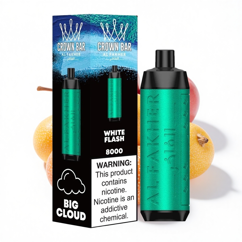 Al Fakher Crown Bar 8000 Kristall Einweg-Vape Weiß Blitz – 18ml, 5mg, 600mAh