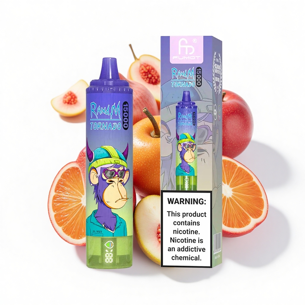 RandM Fumot Tornado 15000 Puffs 25ml Flüssigkeitskapazität 850mAh Mesh Coil Typ-C LCD Vimto