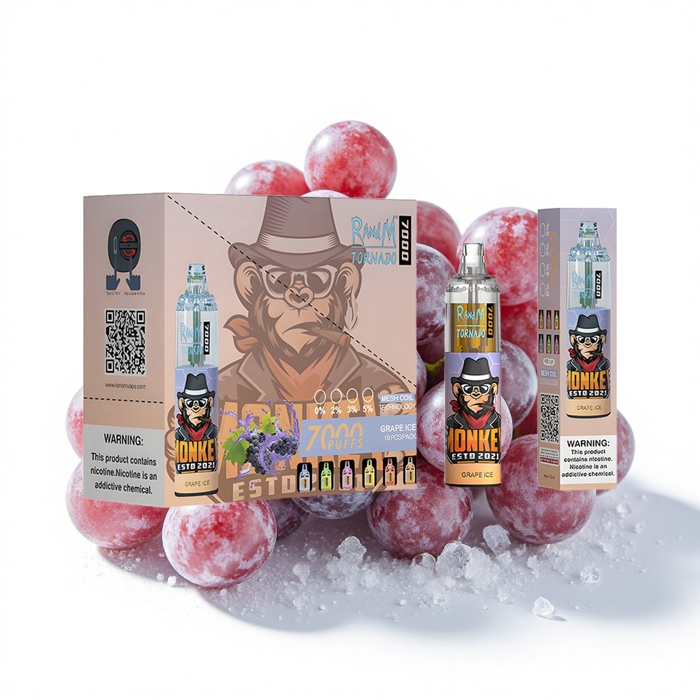 RandM Fumot Tornado 7000 14ml Flüssigkeitskapazität Trauben-Eis Mesh Typ-C RGB Luftregelung