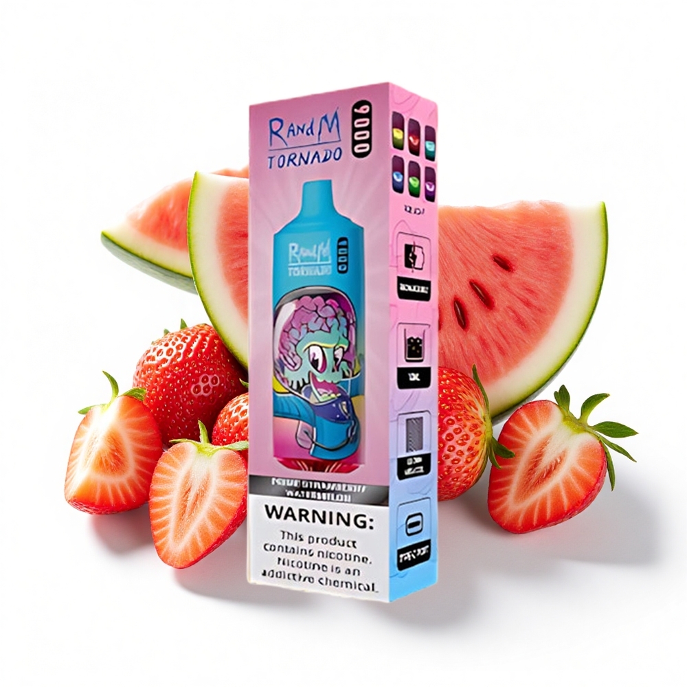 RandM Fumot Tornado 9000 Puffs 18ml Flüssigkeitskapazität Mesh Coil RGB Display Erdbeer-Wassermelone