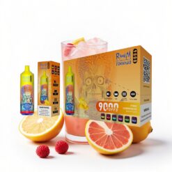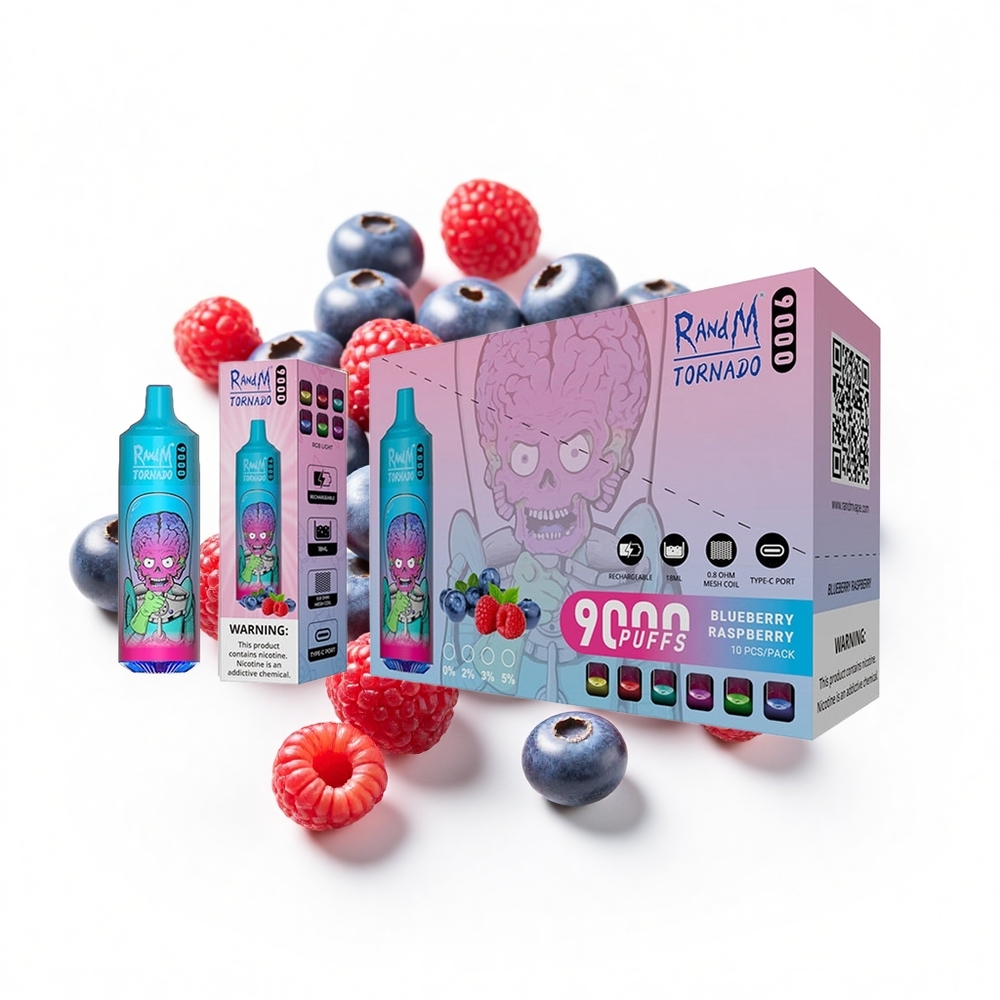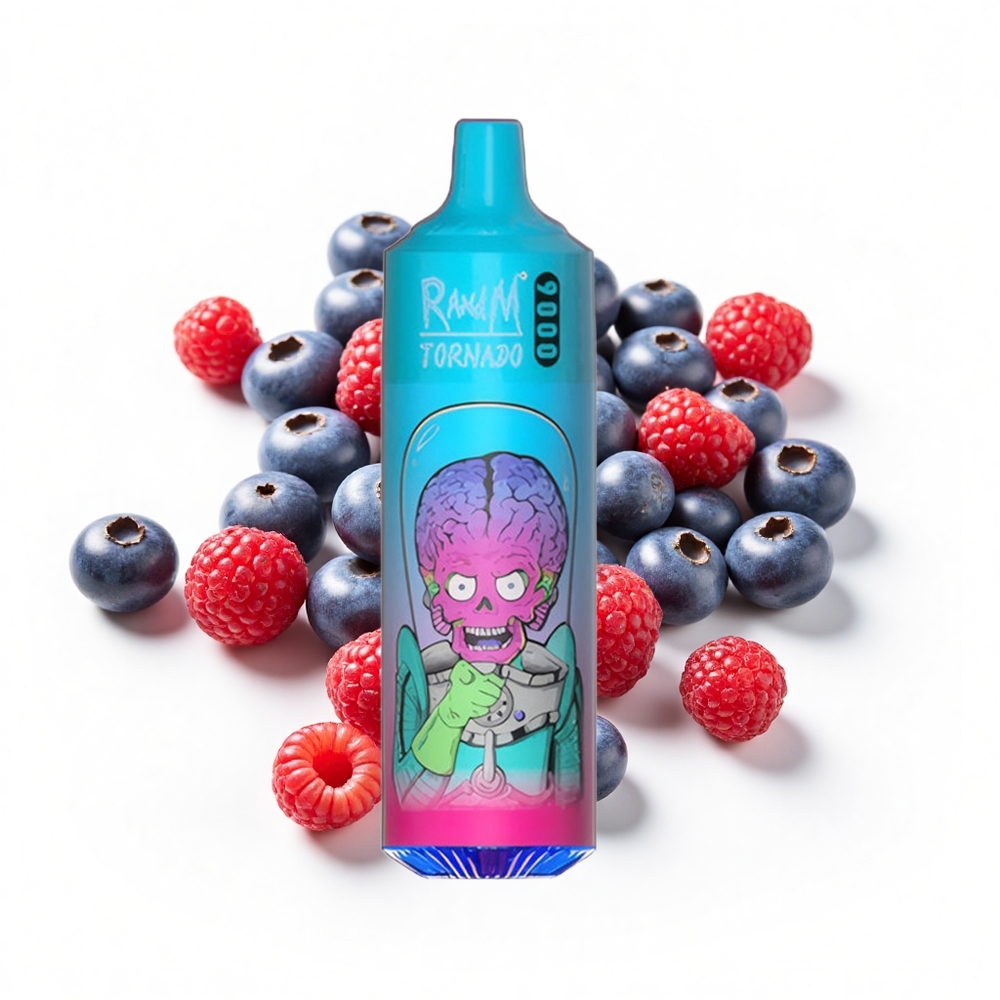RandM Fumot Tornado 9000 Puffs 850mAh 18ml Flüssigkeitskapazität Mesh RGB Blaubeere-Himbeere