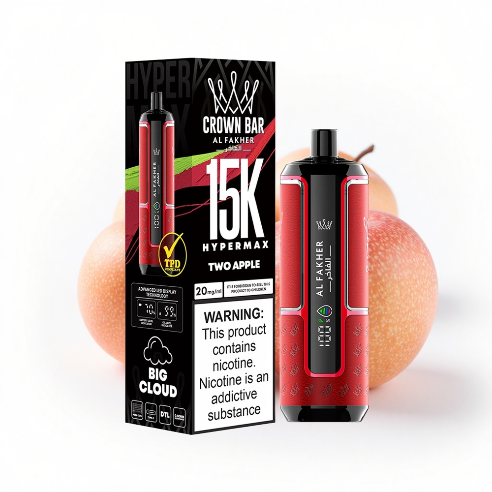 Al Fakher Crown Bar 15K Hypermax Wegwerf-Vape Kit Zwei Äpfel – 22ml, 15.000 Züge, 6mg/ml