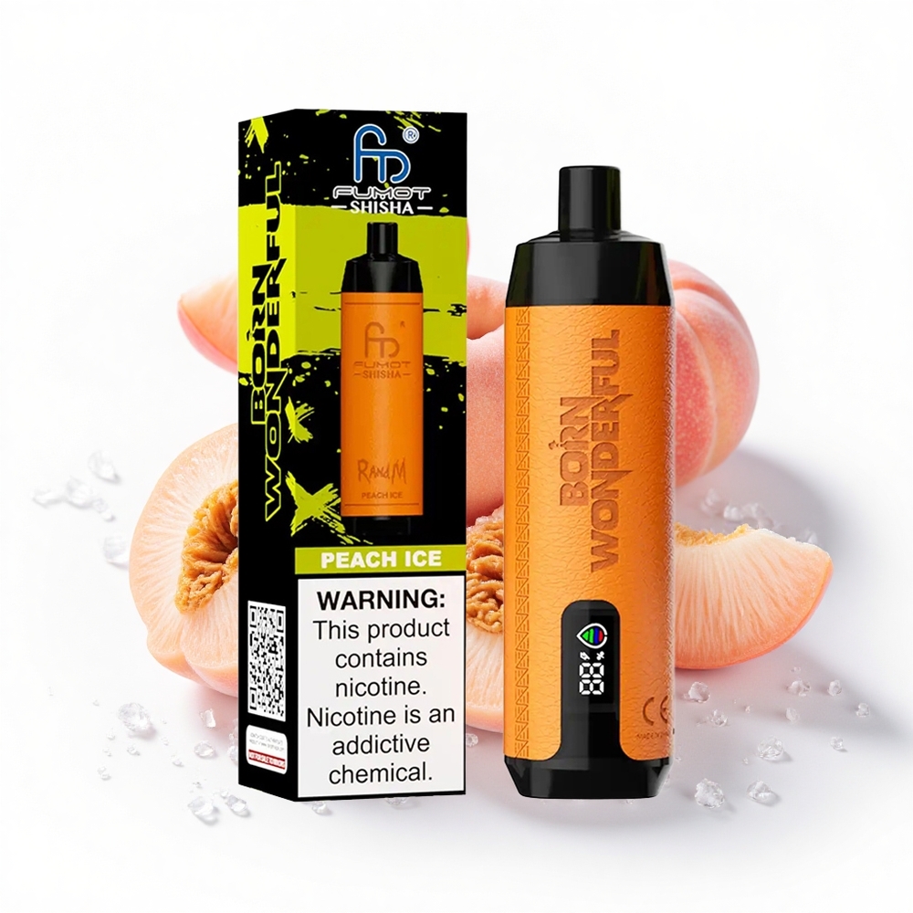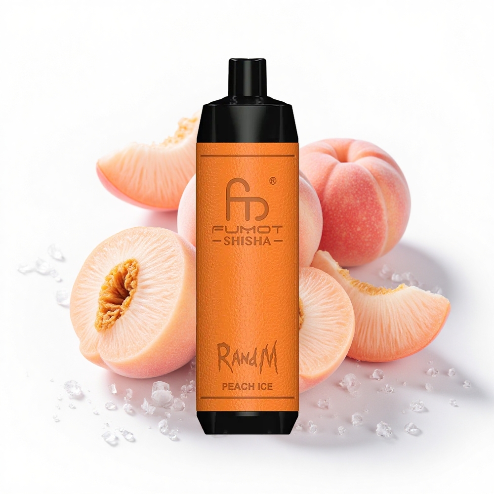 RandM Fumot Shisha 10000 Puffs 18 ml vorgefüllte E-Flüssigkeit Pfirsich Eis Typ-C LED-Anzeige