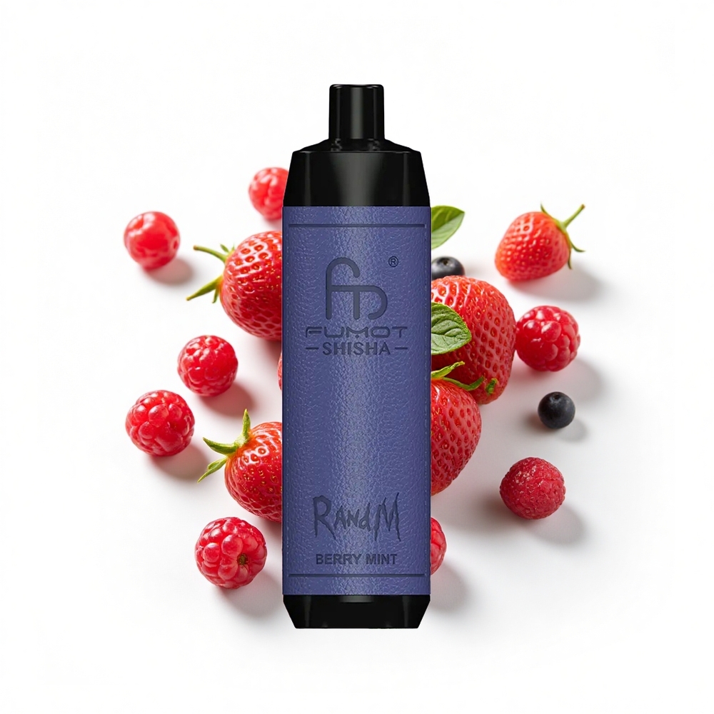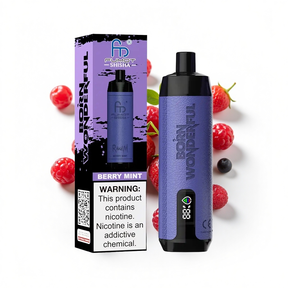RandM Fumot Shisha 10000 Puffs Beerenminze LED-Anzeige Typ-C 18 ml vorgefüllte E-Flüssigkeit