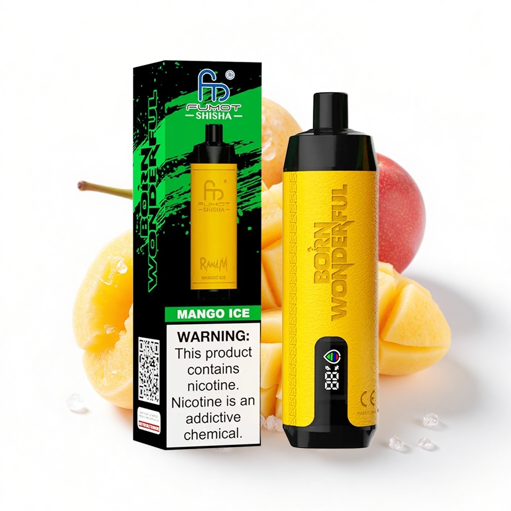 RandM Fumot Shisha 10000 Puffs LED-Anzeige Typ-C 18 ml vorgefüllte E-Flüssigkeit Mango Eis