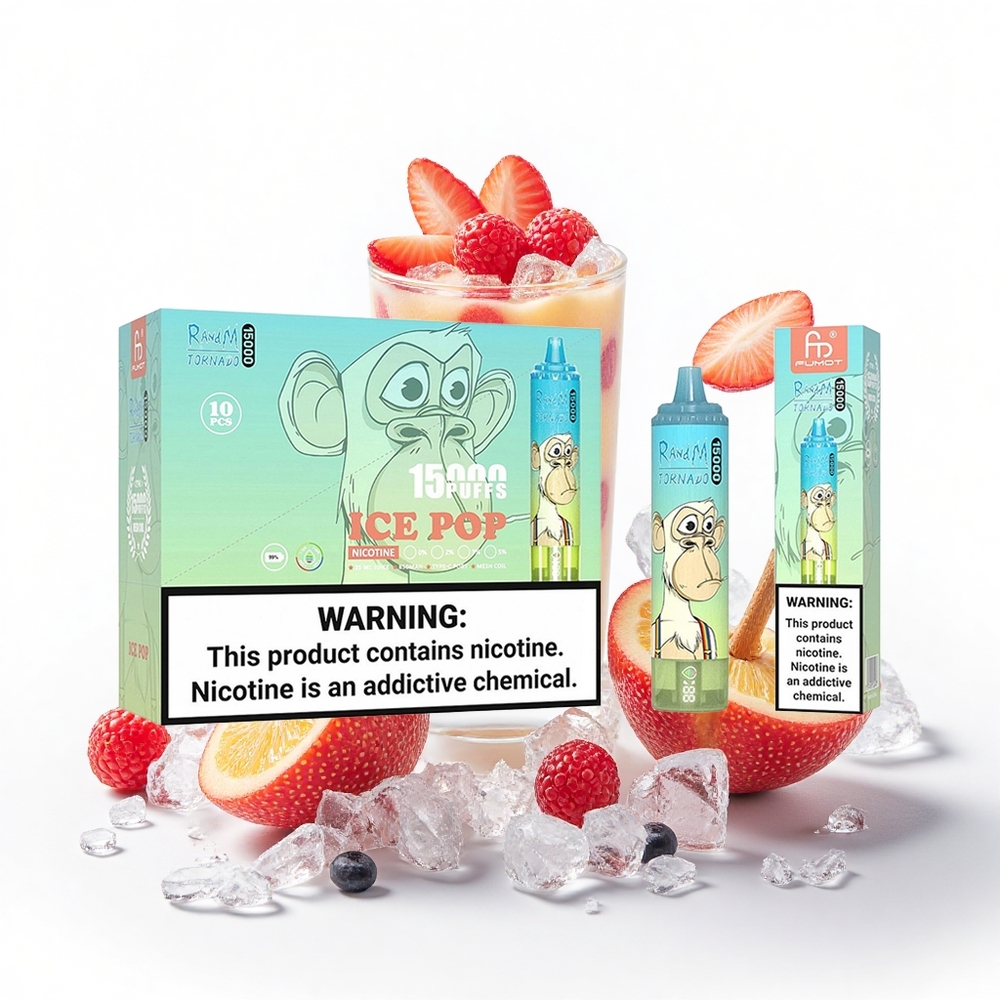 RandM Fumot Tornado 15000 Puffs 25ml Flüssigkeitskapazität 850mAh Eis-Pop Typ-C LCD Mesh Coil