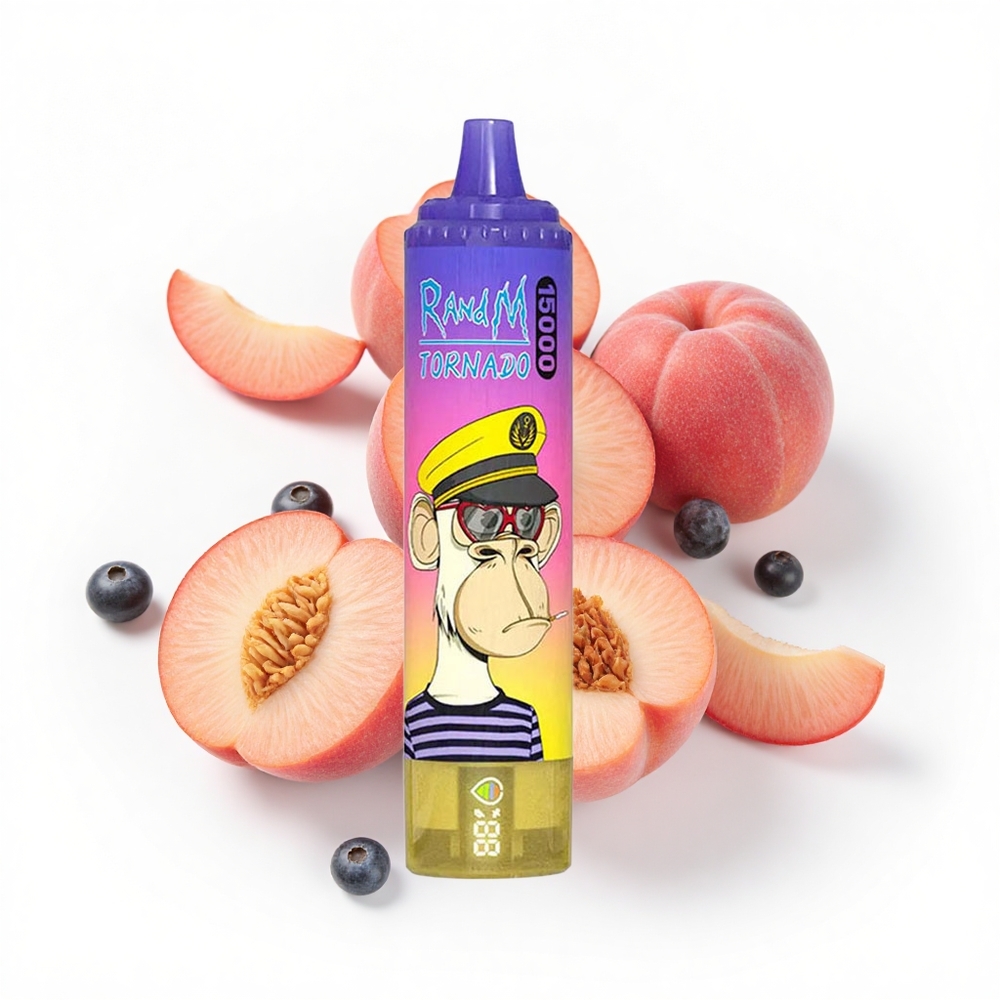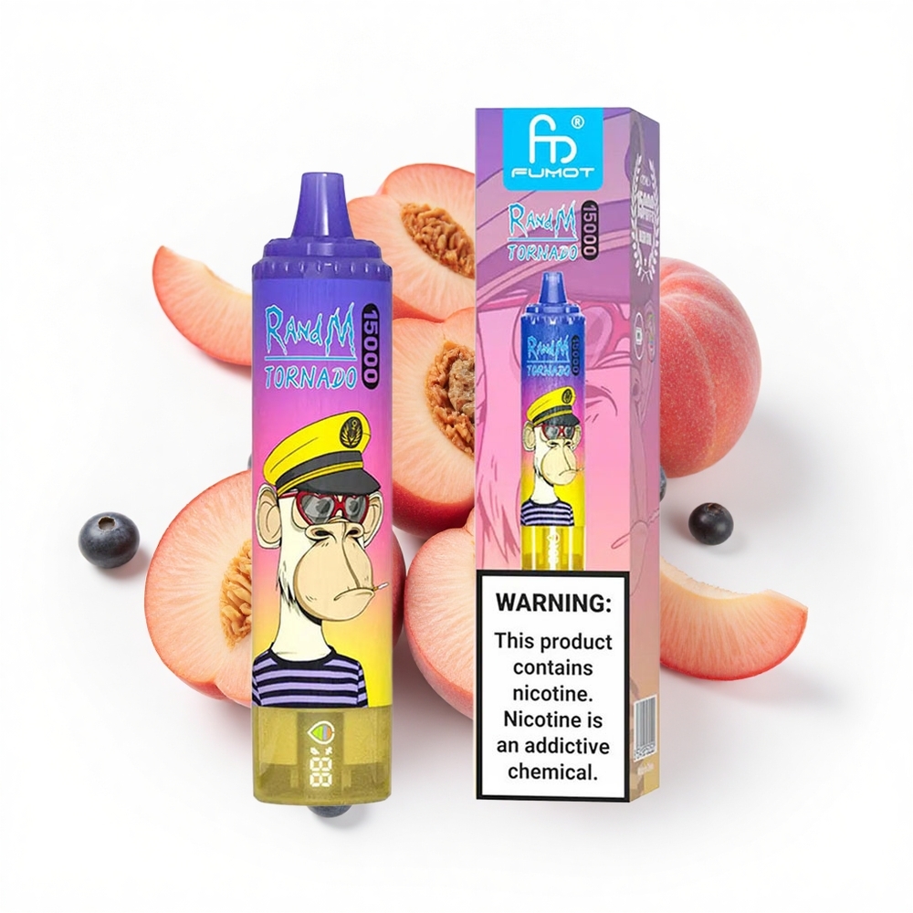 RandM Fumot Tornado 15000 Puffs 25ml Flüssigkeitskapazität 850mAh Mesh Coil Pfirsich Blaubeere Bonbon