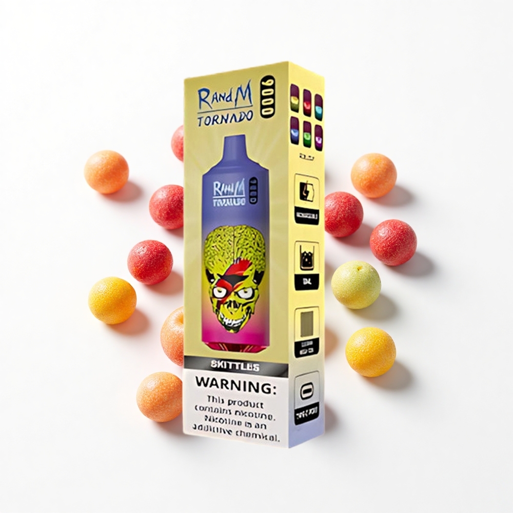 RandM Fumot Tornado 9000 Puffs 18 ml Flüssigkeitskapazität Mesh Coil RGB Display Skittles (Regenbogen)