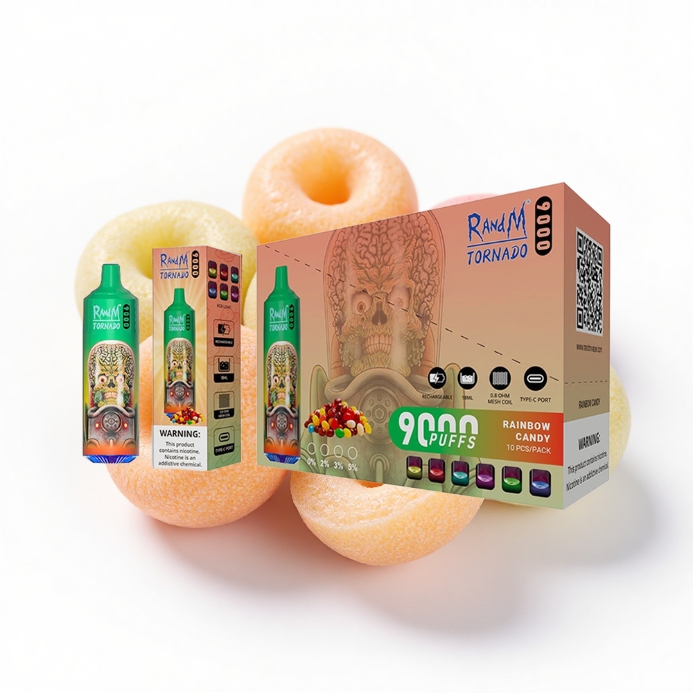 RandM Fumot Tornado 9000 Puffs 18ml Flüssigkeitskapazität Mesh Coil Regenbogenbonbon