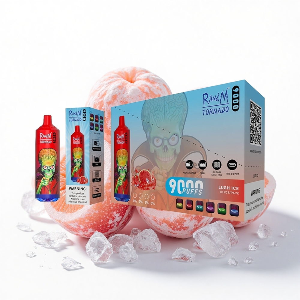 RandM Fumot Tornado 9000 Puffs 18ml Flüssigkeitskapazität Mesh Coil RGB Display Lush Eis