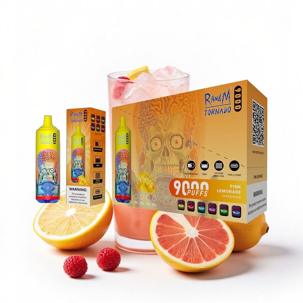 RandM Fumot Tornado 9000 Puffs 18ml Flüssigkeitskapazität Mesh RGB Pinklimonade