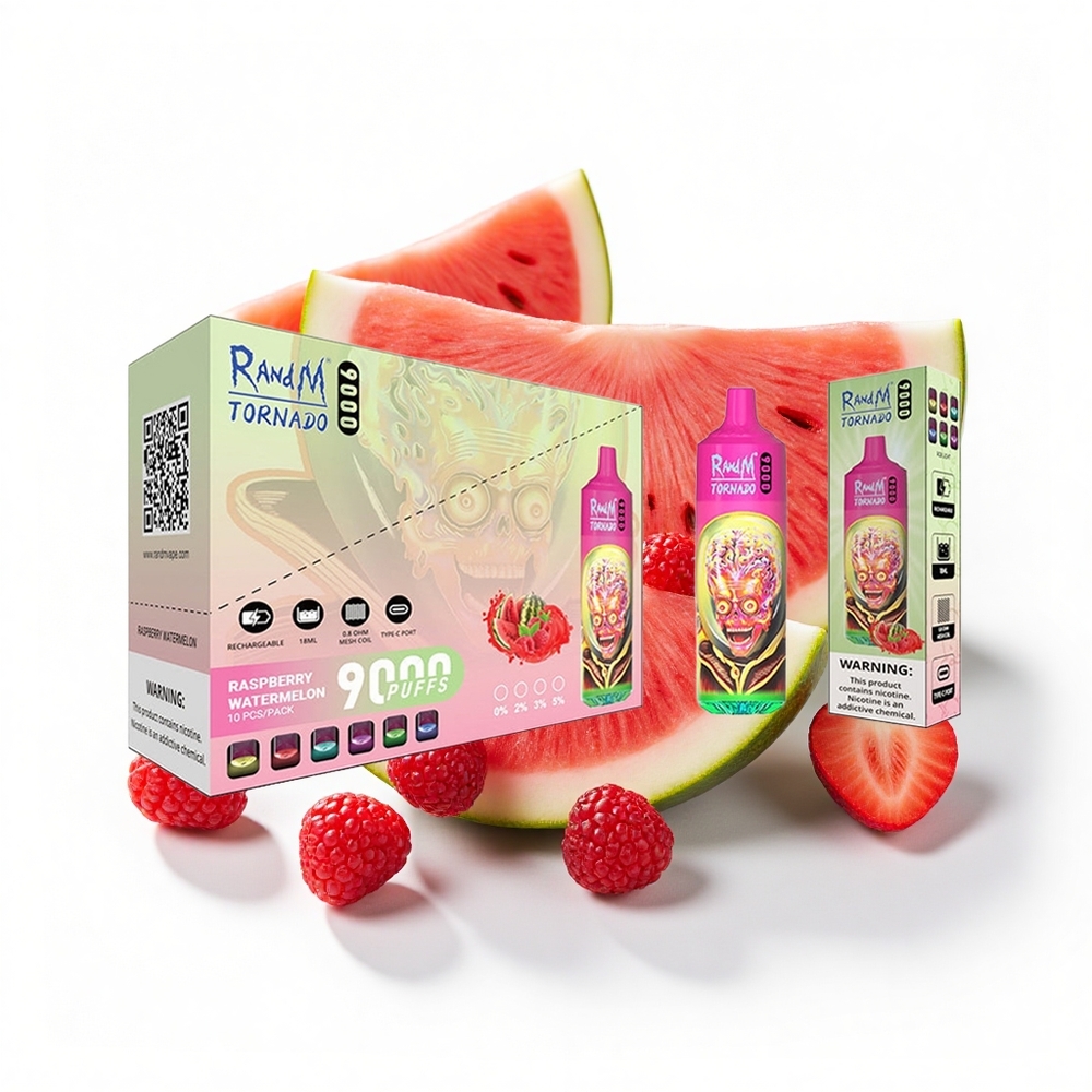RandM Fumot Tornado 9000 Puffs Einweg-Vape Himbeer-Wassermelone mit 18 ml Flüssigkeitskapazität & Mesh Coil